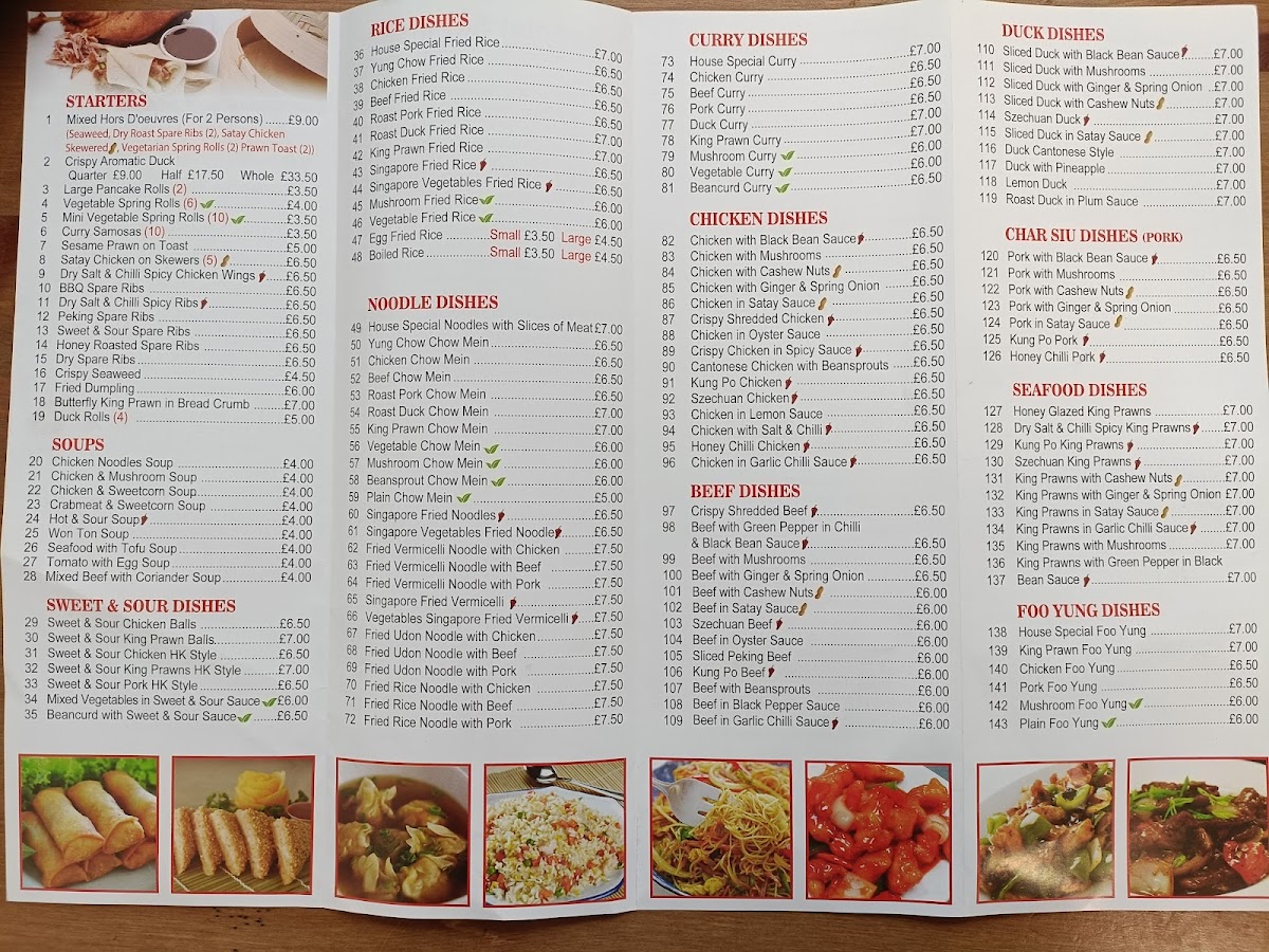 Extra Portions and Sides: Customers can complement their meals with additional sauces such as Thai Dip, Curry Sauce, Sweet & Sour Sauce, and condiments like Poppadoms and Prawn Crackers. There are also options for chips, including Salt & Chilli Spicy Chips, to add variety to the order.